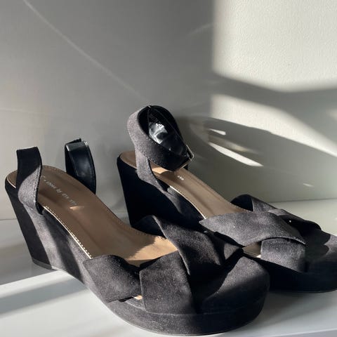 Svarta klackskor i sammetsliknande material från nly. Storlek 38 och oanvända. Klackhöjd cirka 12-13 cm.