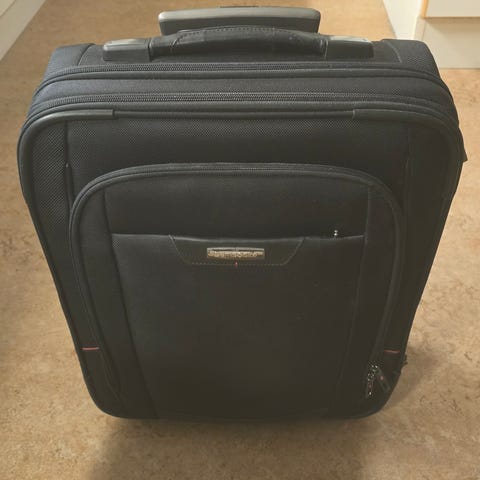 Samsonite resväska tillverkad i tygmaterial, avsedd för unisex-användning. Resväskan har hjul för enkel transport och ett fack med dragkedja på utsidan. Inuti finns ett fack med spännband för att hålla innehållet på plats. 50 g 40 cm