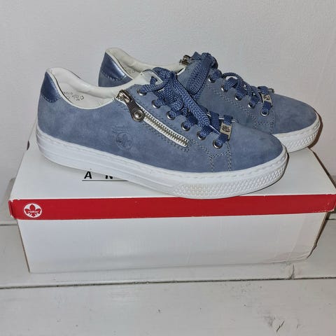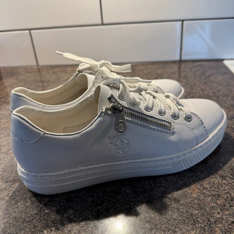 Säljer ett par Rieker sneakers. Skorna är vita och har snörning samt dragkedja.