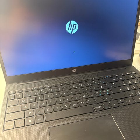 Den här datorn har ett spanskt tangentbord, men jag har installerat svenska tecken (å, ä, ö) på motsvarande knappar. Det går enkelt att köpa klistermärken eller tangentknappar om man vill ha full svensk layout.