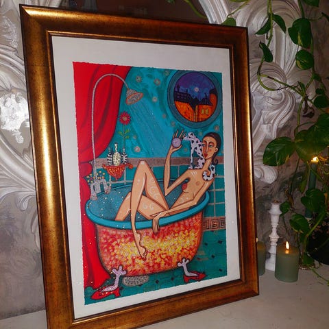 Fin tavla i gott skick av konstnärinnan Angelica Wiik Stjärnfall. 90x75 med Ram