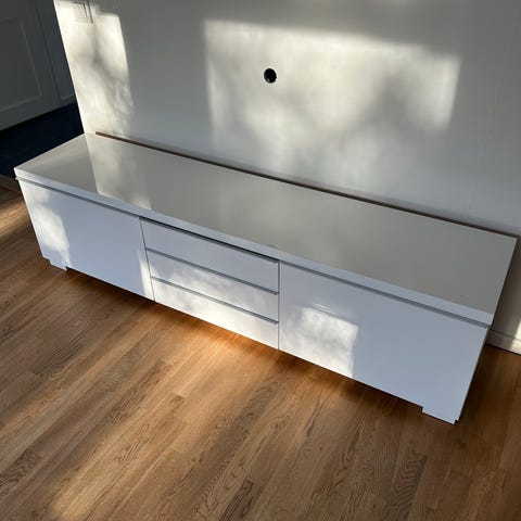 Säljer ett stilrent och praktiskt TV-bord i vit finish.