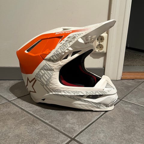 Alpinestars sm5 Crosshjälm med integrerad 100% Goggle. Hjälmen är svart med detaljer i neonfärg på goggles. Designad för motocross och offroad-användning. Storlek 54-56 cm xs men jag har small/medium och den passar. Använd 2 träningar, nypris 3099, nypris Goggles 799
