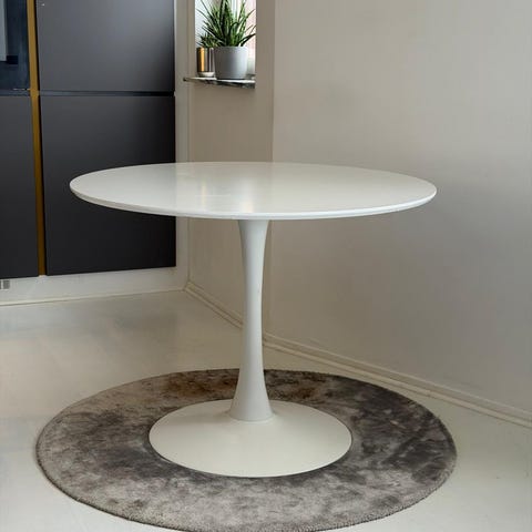 En rund bord med glas skiva och metal ben i bra skick , ( H. 70. cm - B. 60. cm - D. 60. cm ) finns i Västerås .