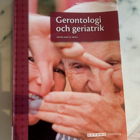 Boken Gerontologi och geriatrik med fokus på ämnen inom åldrande och geriatrik. Texten är på svenska och boken innehåller information relevant för studier och arbete inom äldreomsorg och medicin relaterad till äldre personer.