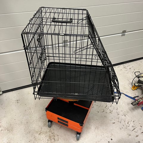 Metallbur för husdjur i svart färg med gallerdesign. Burens botten är utrustad med en avtagbar bricka för enkel rengöring. Passar för små till medelstora djur.