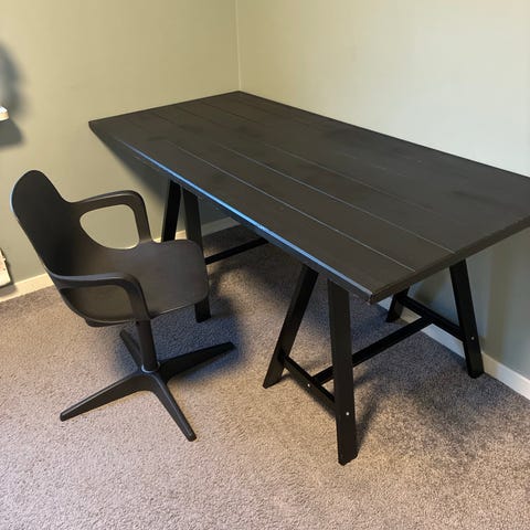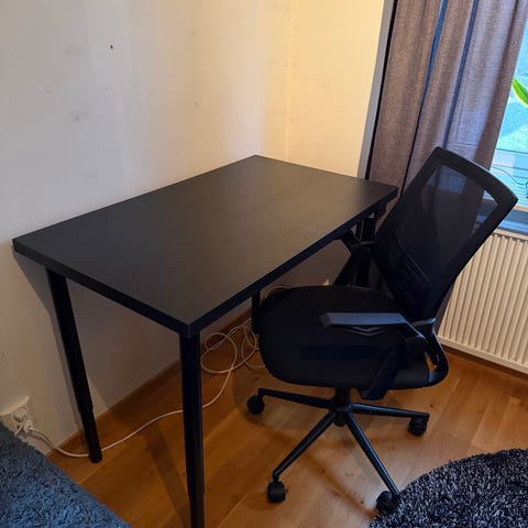 Säljer IKEA OBEGRÄNSAD skrivbord i svart från Swedish House Mafia-kollektionen. Stilrent och stabilt, passar både hemmakontor och musikstudio.