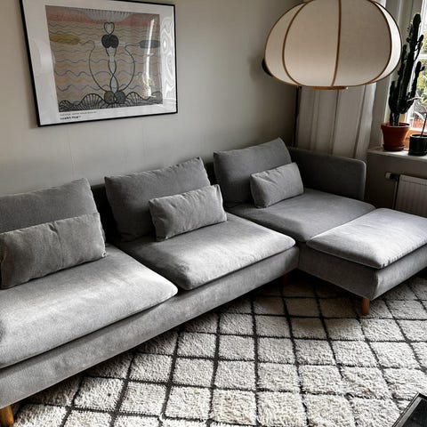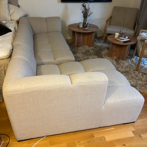 Schäslong från IKEAs serie SÖDERHAMN i färgen Blekinge vit. Tyget är slitet, se bild. I övrigt hel. Hämtas i Örebro