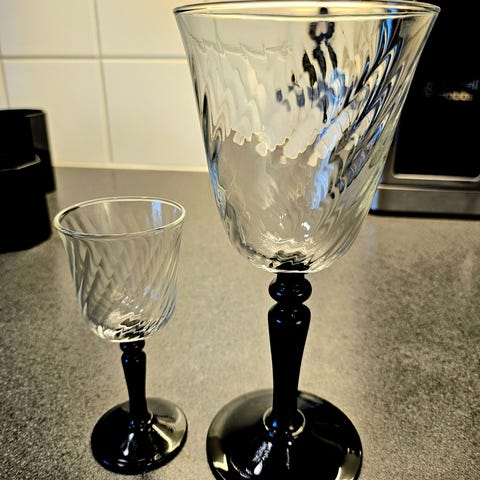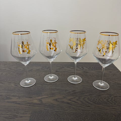 Tre förpackningar med nya vinglas från RBA, fyrpack.