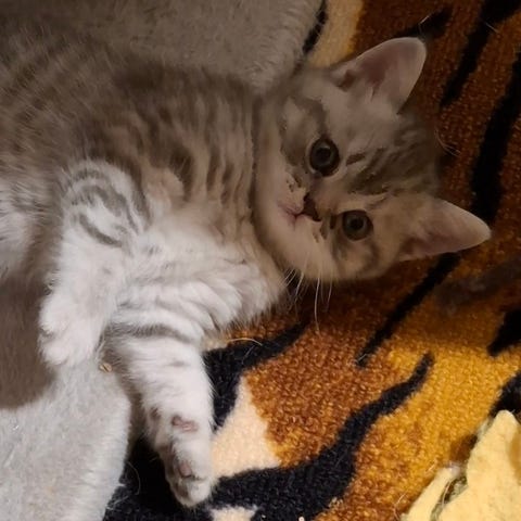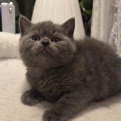 En söt brittisk korthår hona utan stamtavla söker ett tryggt och fridfullt hem. Hon är social och lekfull och van vid både människor och vardagliga ljud. Hona har det typiska rundansiktet, den täta pälsen och lugna, gosiga temperamentet som rasen är känd för.