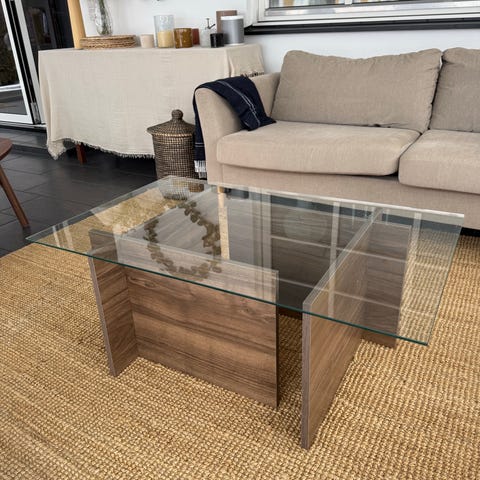 Modernt soffbord i glas och metall