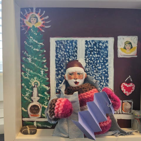 Landskapet förgylls även av julig bakgrundsmusik. Drivs av tre AA-batterier, du får med helt nya batterier som jag satt i.