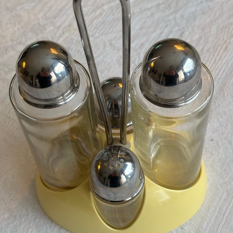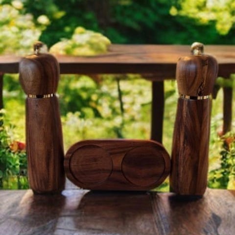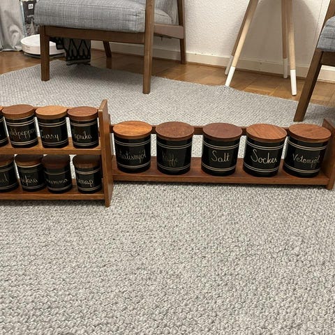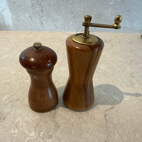 Ett nytt set Karl Holmbergs i Götene salt- och kryddställ, i teak och metall.