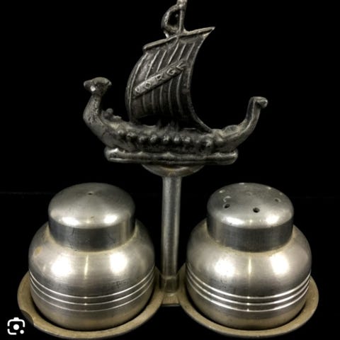 Jag säljer ett nytt set Karl Holmbergs i Götene salt kryddställ. Teakställ för salt- och pepparkar, burkar. Två (2) kryddburkar av teak och metall-skruvlock på ett ställ / bricka / plattform ett rund-svarvat handtag i mitten av plattformen. Undersidan är stämplad; ‘Karl Holmbergs AB, Äkta teak, Götene Sweden‘. Burkarna är 4 cm diameter men olika höga den ena 6 cm hög och den andra 5 cm hög. Dimensioner teakställ: 14 cm lång, 7 cm bred, 12,5 cm hög.