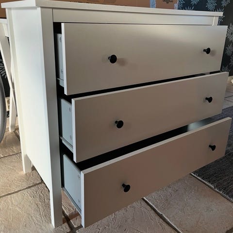 Ikeas Hemnes i svart/mörkbrun bets. 8 lådor. Fint skick, aldrig flyttad och stått i varannan veckas hem.