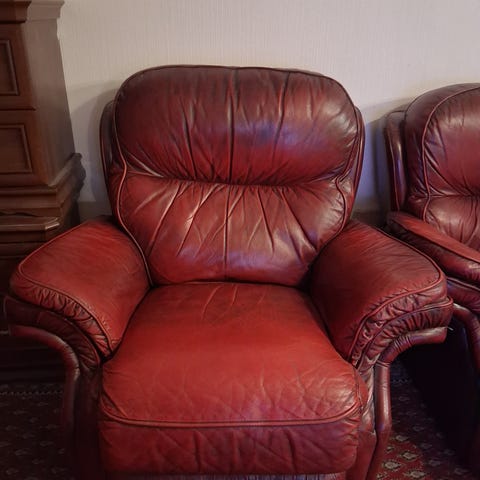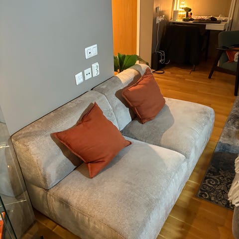 Soffa med fåtölj i grått tyg