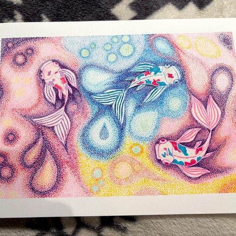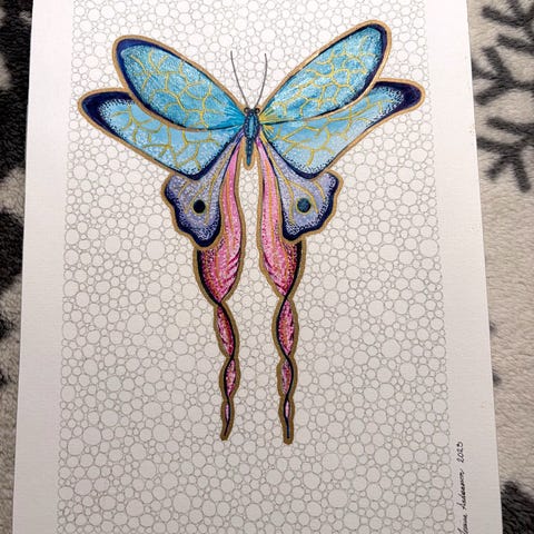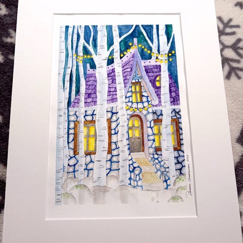 Målad av (Mig) Jessica Andreasson. Enkel, utan passepartout 21x29,5 cm yttermått.