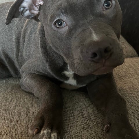 Lilla Luna,som hon heter, är en valp på 10 veckor. Hon är i färgen fawn med vita teckningar. Hon har gröna ögon. Hon kommer bli runt 30-40 kg.