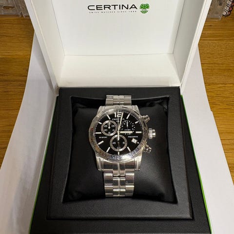 Certina dykarur i Titanium med automatiskt urverk, gångreserv på 80 timmar och en vattentäthet på 300 m. Levereras med originalbox och avtagna armbandslänkar. Prutat och klart.