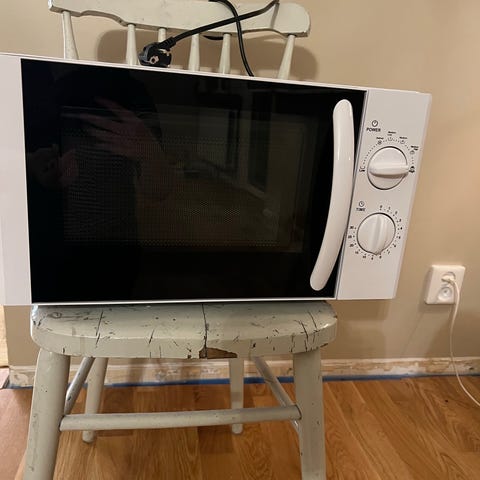 Micro i bra skick. Fungerar utan problem. För inbyggnad i högskåp 60 cm bredd eller i överskåp (djup ca 35 cm). Mått front: 60x46 cm