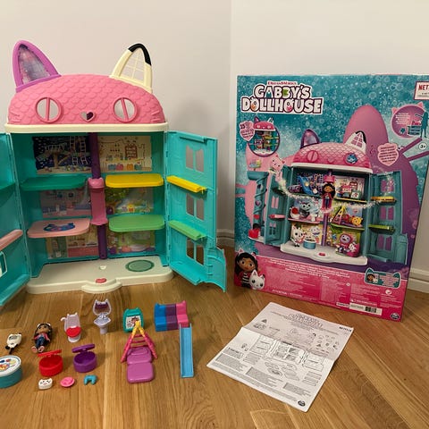 Gabbys Dockhus med flera rum och öppningsbara dörrar. Inkluderar olika möbler.