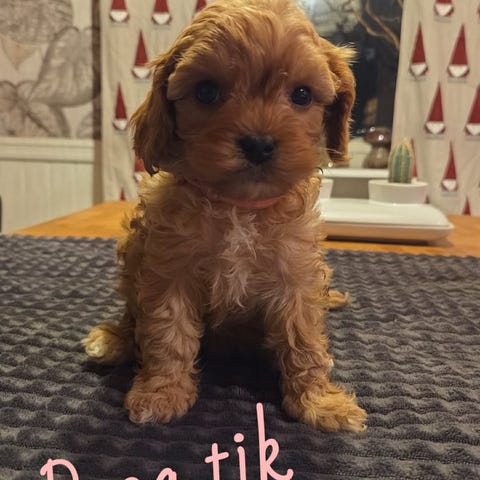 Tre fina tikar födda 20251129 och kommer vara leveransklara 20260124 då de är 8 veckor gamla. Mamman är cavalier, väger 4-5 kg och pappan är toy pudel och väger 2 kg.