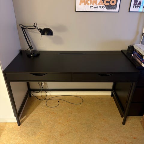 2st IKEA skrivbord, ett i fint skick och ett med lite repor. Finns på Kungsholmen. Mörkgrått.