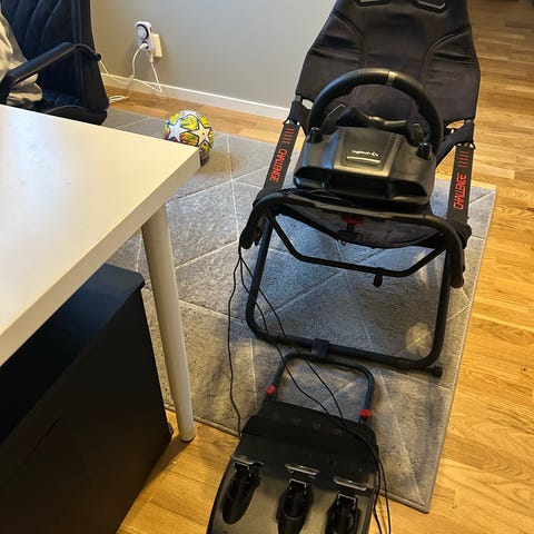 Racing set med playseat racingstol med ratt och pedalset, samt växelspak.