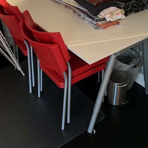 Barnbord för lek och pyssel från MAGIS. Bordskiva i vit mdf och vita bordsben i polypropen. Synligt använd men i gott skick. Nypris 4,000kr