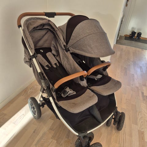 Mycket fint skick. Smidig och stabil syskonvagn med bra komfort för båda barnen. Lättkörd och praktisk i vardagen. Förvarad inomhus, inga skador.