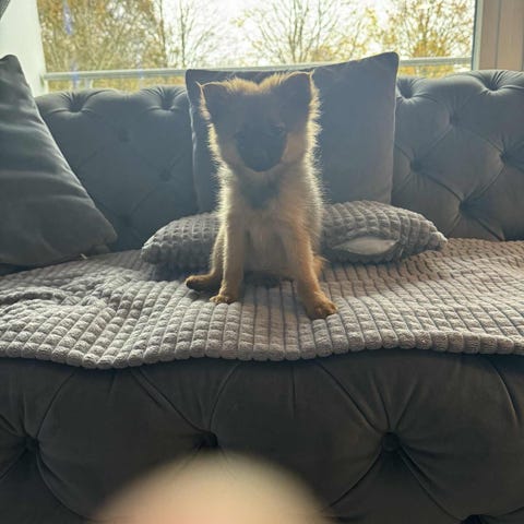 Valpen är 12 veckor gammal och väldigt social, lekfull och kärleksfull.