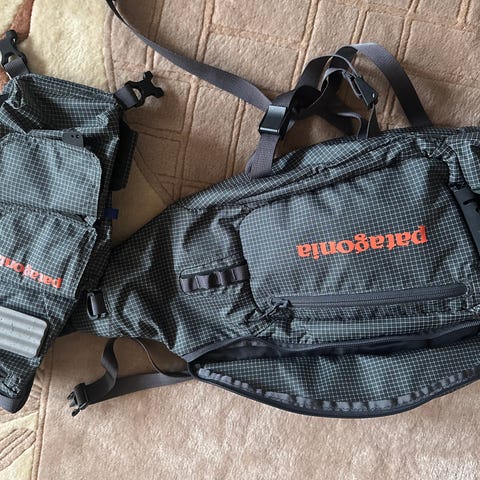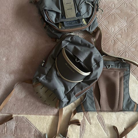 Säljer en axel-väska, (som man hänger över huvudet) 3 i 1. Den har plats för håv mat, kläder, dricka och mycket mer. Huvud öppningen har 2 fack som har plats för allt som man tar med sig till vattnet. Den är 1-3 ggr använd.