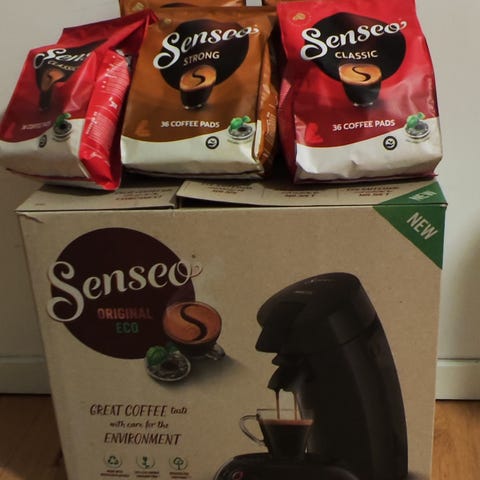 Philips Senseo kaffemaskin i svart färg. Maskinen är designad för att användas med kaffepåsar och har en enkel funktion för bryggning av kaffe. Passar för hemmabruk eller kontor där snabb och enkel kaffebryggning önskas. Philips Senseo kaffemaskin! Plus kaffekapslar! Maskinen är helt ny, endast använd två gånger! Härlig kaffenjutning hemma eller på kontoret! Över 30 kapslar ingår gratis! Endast upphämtning mellan Kalmar och Växjö!