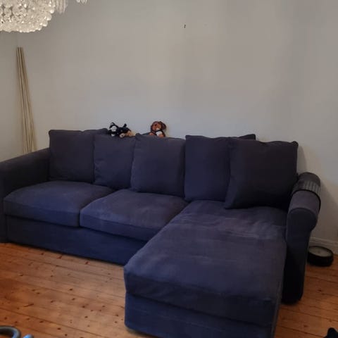 Djur finns i hemmet. Soffan är just nu i Linköping för upphämtning.