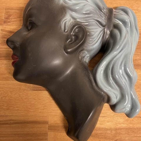 Dekorativ byst i gips. Svart, ca 15 cm hög