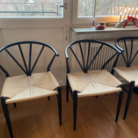 4st DAN-FORM Delta Matstolar - Naturpapperssnöre och Svart Stål. Fint skick. Nypris 12 400kr.