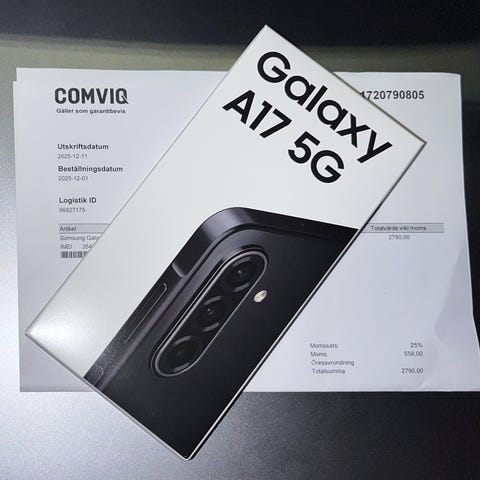Samsung Galaxy A17 5G mobiltelefon med 128 GB lagringsutrymme.