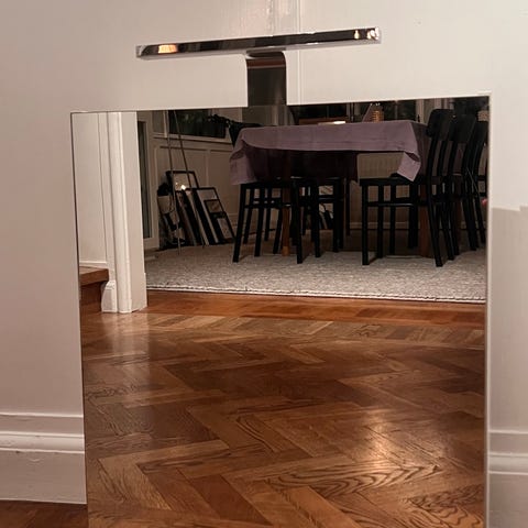 Spegel med förvaringsskåp i glas och trä (badrumsskåp)
