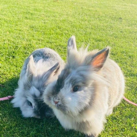 Det är fina kaniner som är lite blyga men ändå älskar att gosa.
