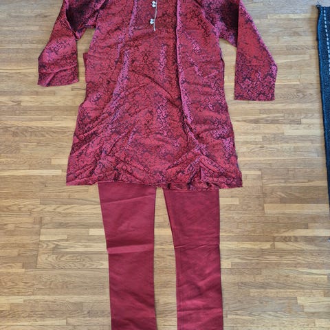 Säljer en tomtedräkt, använd en gång. Luva, jacka och byxor (samt ett skärp om man tycker att plastskärp är kul. Härlig kvalitet med fin struktur. Storlek känns om som L–XL. (Min längd 1,77, rejält byggd). Bra längd i byxor som med fördel stoppas ned i tomtestövlarna. Kan skickas mot porto/fraktavgift.