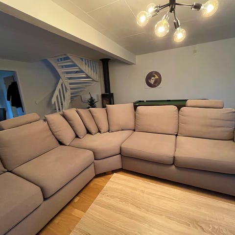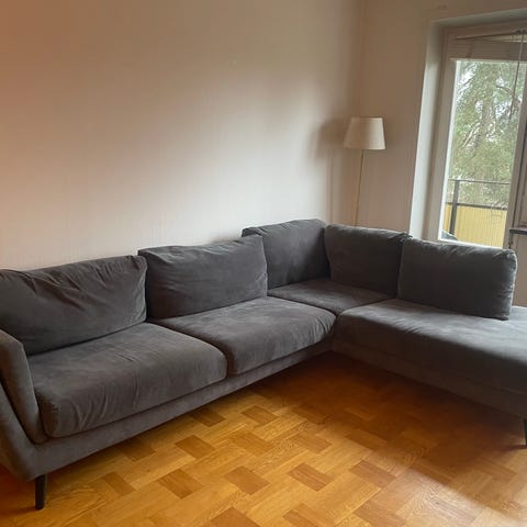 Nypris är cirka 18 000kr. Köptes för drygt 1,5 år men säljs nu pga flytt till en mindre lägenhet. Lite smuts här och där men dynorna går att ta bort och tvätta.