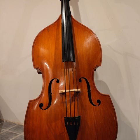 Kontrabas i trä med brun finish. Stränginstrument med fyra strängar, använd för att spela basgångar i olika musikstilar. Passar för musiker som behöver ett akustiskt basinstrument.