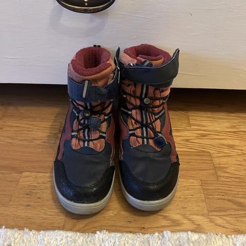 PAX barnskor i storlek 23. blå, beige och orange. Praktisk kardborrebandsknäppning.