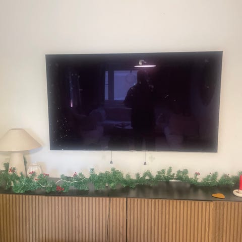 Säljer min Samsung TV på 57 tum och vit tv bänk på grund av flytt.