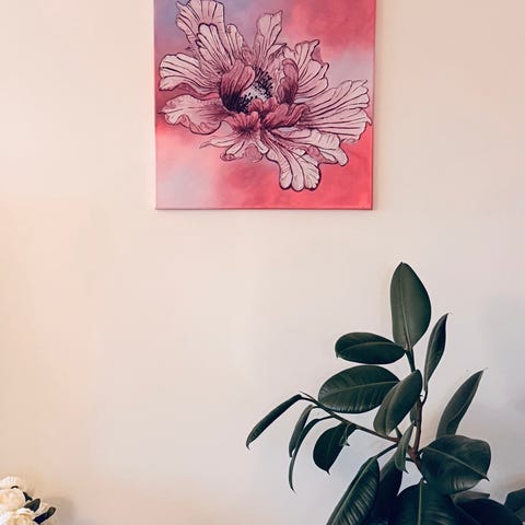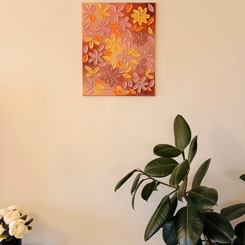 Handmålad Blommig Tavla Pastellfärger 50x70