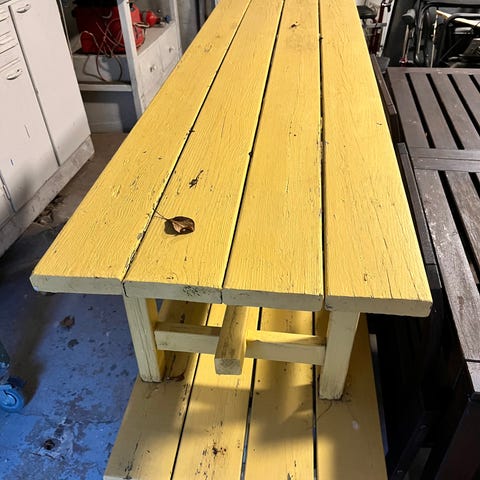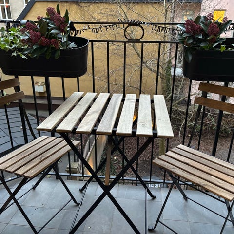 Bord 1,40 längd finns två skivor så man kan förlänga
