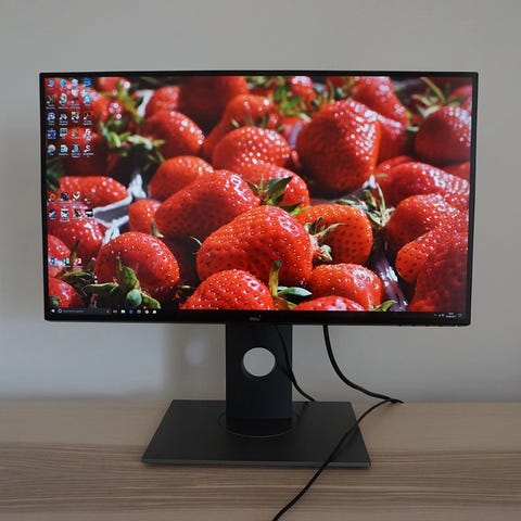 Skärmen står istället på ett separat monitorstativ som syns på bilden.