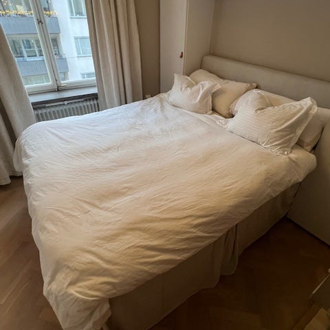 Säljer pga flytt. Haft denna säng i enbart 1,5 år, fullständig continentalsäng, väldigt bekväm och med extra höga ben med möjlighet till förvaring under. Dom olika delarna är madrassbotten, resårmadrass (VÅGSTRANDA, fast) och bäddmadrass (Lina från Kungssängen, 5 år då den är köpt sen innan https://kungsangen.com/se/p/baddmadrasser/baddmadrass-lina/209024)