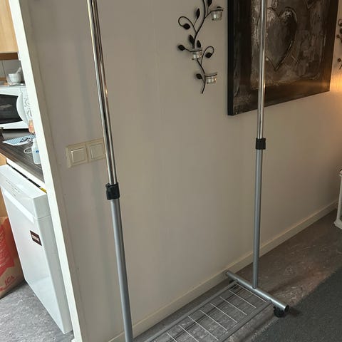 Klädhängare, troligtvis en äldre variant av IKEAS rigga. Perfekt om man vill få överblick över det som hänger. Stabil och går att demontera. Hämtas i norra sorgenfri, Malmö.