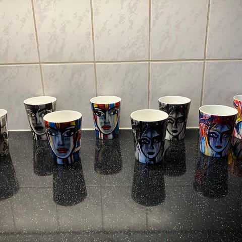 11 kaffemuggar från Carolina Gynning. Väldigt bra skick, sparsamt använda.